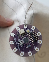 Το Arduino Lilypad σχεδιάστηκε έτσι ώστε να διευκολύνει το ράψιμό του σε υφάσματα.